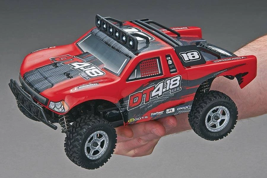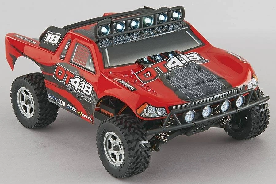 For blazing new trails, nothing matches the fun and excitement of the DT4.18BL desert truck! This awesome off-roader boasts rugged realism, right down to the LED lights mounted on top. Factory assembled and complete, it handles the toughest terrain 4WD ease, brushless power and waterproof electronics – and you can take the DT4.18BL’s performance to another level when you install an optional LiPo battery pack!