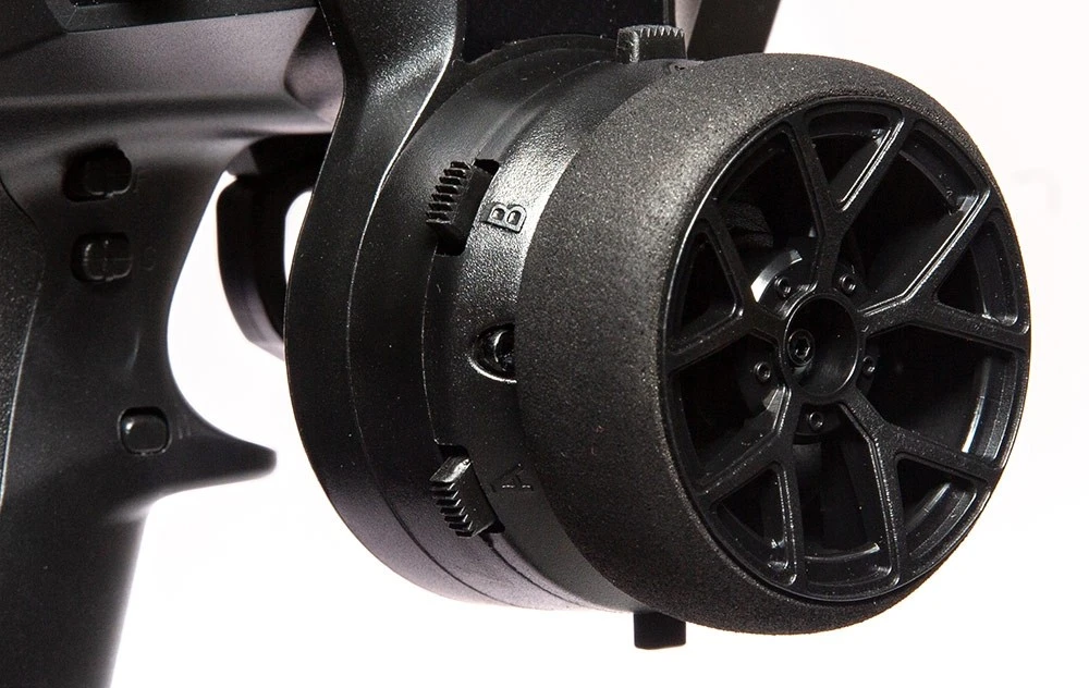 Among the many ergonomic options available for tailoring the DX5 Pro 2021 transmitter to your personal touch are updated trim tabs, designed to make their operation easier while you drive your vehicle.