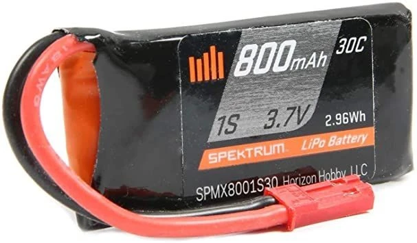 Spektrum part #SPMX8001S30, 800mAh 1S 3.7V 30C LiPo Battery with JST Connector