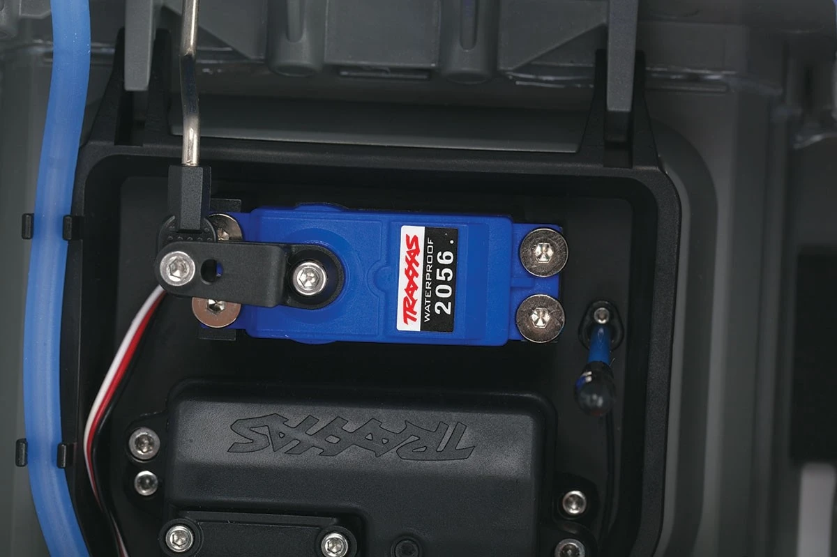 Traxxas Stability Management® (TSM) makes it possible to experience all the extreme power, speed, and acceleration that was engineered into Traxxas models by making it much easier to control the vehicle on any water condition. Punch it off the line and TSM goes to work sensing the boats’s direction and making steering corrections to provide straight-ahead fullthrottle acceleration without fishtailing, spinouts, and loss of control. TSM also works during cornering, first making intuitive corrections to maintain the vehicle’s line, then hammer the throttle earlier in the turn for much faster exit speeds. Traxxas TSM gives all the benefits modern electronic stabilization has to offer without intruding on driving fun or introducing unexpected side effects that can be found on other systems such as drastically reduced turning radius, assistance that times out (quits), throttle restrictions, and an overall disconnected driving feel. Traxxas engineers developed superior tuning algorithms that run on high-speed, precision electronic components to create a system that works invisibly, in the background, without ever limiting throttle. TSM can be fine tuned (or turned off) for different surfaces by simply adjusting the multi-function knob on the TQi transmitter, or by adjusting the slider in the Traxxas Link app. The result is driving faster, with more ease, and having more fun. In fact, the driver may not even realize how much TSM is helping until it is turned off and their driving skills are tested without it! Everything is waterproof and Traxxas-tough as you’d expect. This is performance on a whole new level!