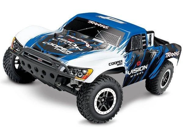 The award-winning Traxxas Slash short-course race truck puts you in the driver’s seat for intense fender-to-fender, high-flying off-road action. Full-scale short-course race trucks embody the spirit of Traxxas R/C with their extreme 900+ horsepower racing engines full-throttle, dirt-roosting power slides, giant suspension travel, and big-air jumps.
