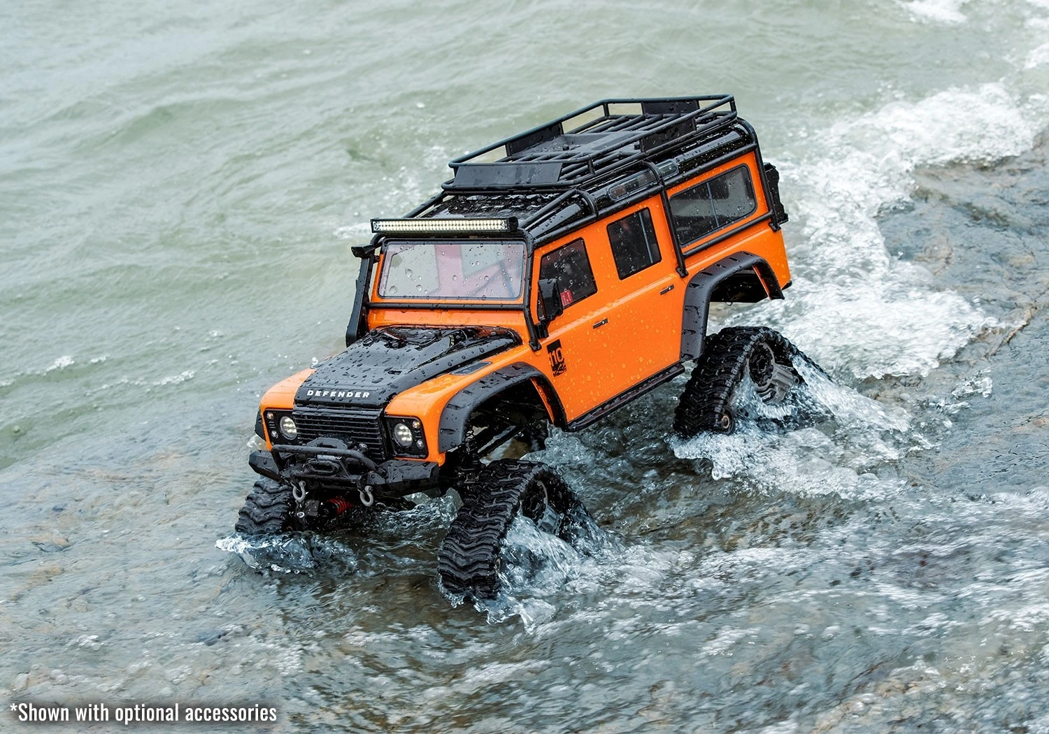 New all-terrain Traxx™ provides the most significant traction upgrade you can make to the TRX-4. The TRX-4 already has a go-anywhere attitude and the gear to match, but installing a set of Traxx yields a machine that feels practically unstoppable on virtually any terrain. The enormous contact patch and grippy treads shrug off the deepest mud and float across deep sand. Traxx raises the portal axles even higher (over 16mm!) for increased ground clearance that lets you straddle huge obstacles on the trail.
